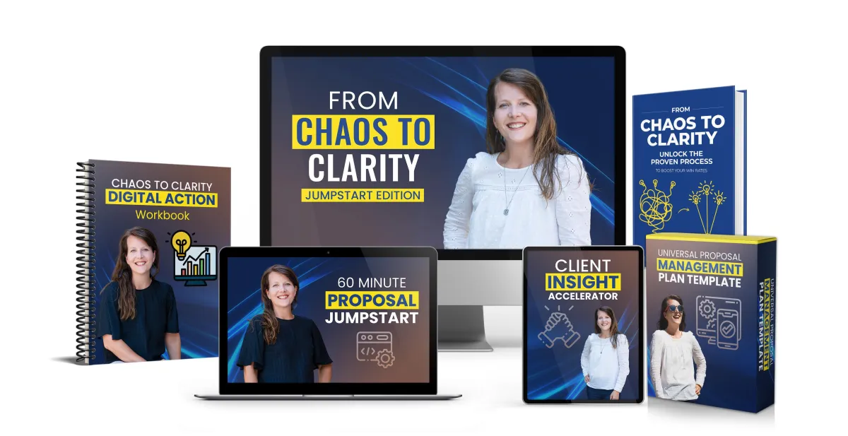 From Chaos To Clarity: Jumpstart Edition is your toolkit to lead your industry, improve proposal success, and confidently tackle urgent needs while still keeping quality top-notch.